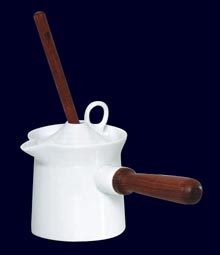 Delicious drinking chocolate is prepared in France since the 18th century.Today you can enjoy this speciality again with the BMF chocolatière ‘Le choco’.Prepare the chocolate in many different styles directly on the stove or ceran (not on gas cookers) and serve it at the table. ‘Le choco’ consists of valuable porcelain, handle and whisk are made of solid walnut tree. For cleaning use nor-mal detergent.Item-no.
